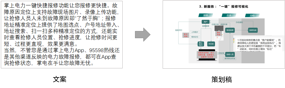 02原理可视化 原理可视化多用于展示app或者工作流程等,类似的项目在科技类产品汇报中比较多见,如果需要向上汇报研发情况、工作成果,讲清楚复杂的流程关系是必不可少的。 对于这种原理的可视化呈现,建议使用动画层层递进。如下案例中,电力公司的“一键保修”。通过工作流程的可视化让人对每个环节“了然于心” |